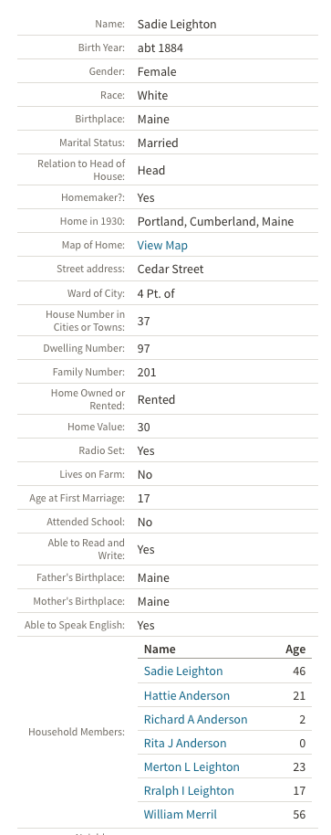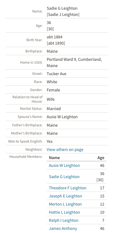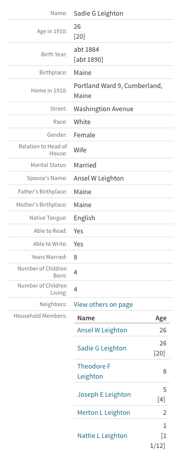 1910, 1920, 1930 & 1940Sadie G. Leighton